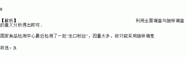 国家食品检测中心最近检测了一批“龙口粉丝”,发现近80%的“龙口粉丝”不合格,检测中心获取的有关数据,采用的调查方法是( )