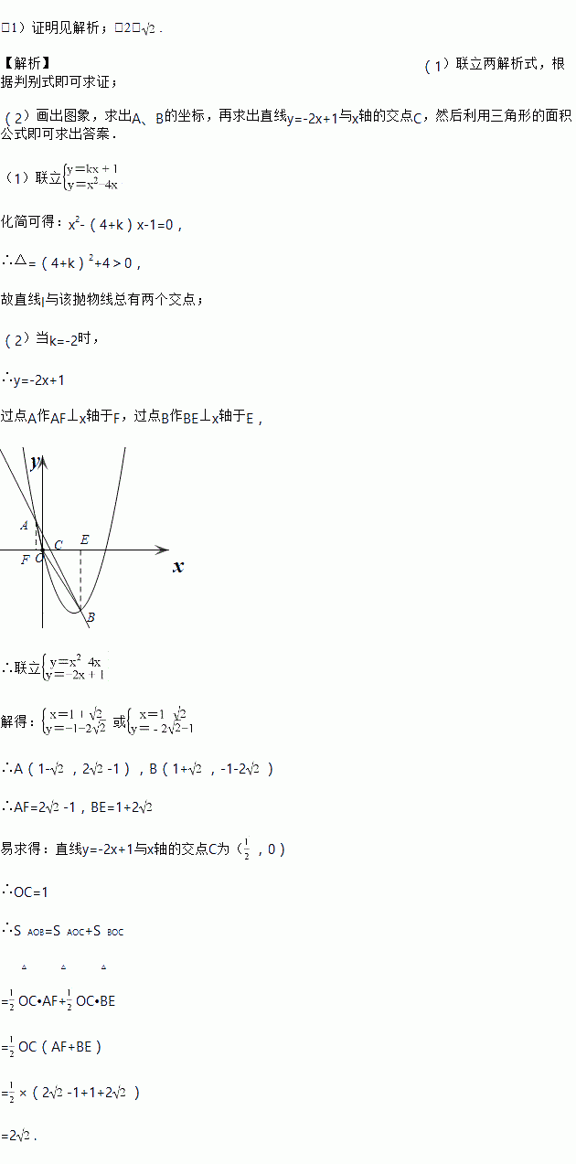 (2)设直线l与该抛物线两交点为A,B,O为原点,当k=-2时,求△OAB的面积.