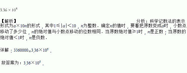 2018年春节假期,某市接待游客超3 360 000人次,用科学记数法表示3 360 000,其结果是_______.