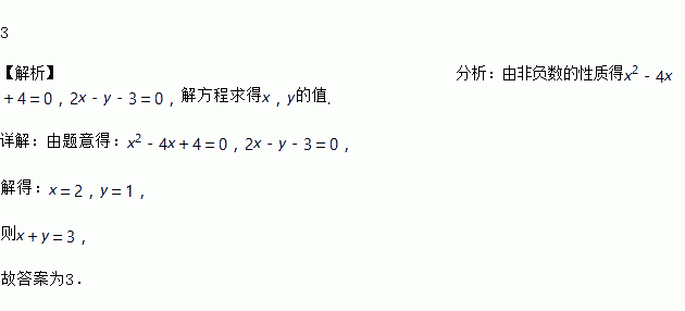若|x2﹣4x+4|与互为相反数,则x+y的值为____.