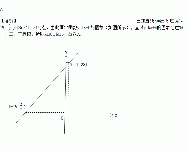 直线 y=kx+b 过 A( -19, ),B(0.1,23)两点,则( )