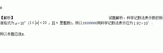 太阳的温度很高,其表面温度大约有6 000 ℃,而太阳中心的温度达到了19 200 000 ℃,用科学记数法可将19 200 000表示为( )