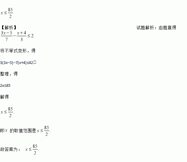 代数式与的差不大于2,则x的取值范围是_____.