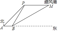 如图,一艘渔船正以60海里/小时的速度向正东方向航行,在A处测得岛礁P在东北方向上,继续航行1.5小时后到达B处,此时测得岛礁P在北偏东30°方向,同时测得岛礁P正东方向上的避风港M在北偏东60°方向.为了在台风到来之前用最短时间到达M处,渔船立刻加速以75海里/小时的速度继续航行_____小时即可到达.(结果保留根号)