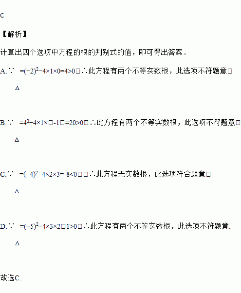 下列一元二次方程中,没有实数根的是( )