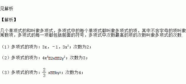 指出下列多项式的项和次数: