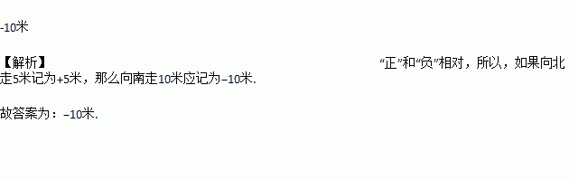 如果向北走5米记为是+5米,那么向南走10米记为_______________。