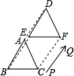 分析:根据平移作图的方法作图即可:过A、B、C分别做PQ的平行线,并且在平行线上截取BE=CF=AD=2CM,连接ED,EF,DF,得到的△DEF即为平移后的图形.