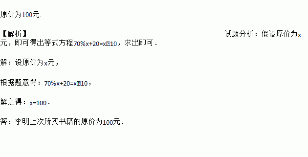 张新和李明到图书城去买书,请你根据他们的对话内容(如图),求出李明上次所买书籍的原价.