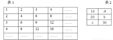 观察表l,寻找规律.表2是从表l中截取的一部分,其中a,b,c的值分别为( )