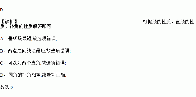 A. 垂线最短 B. 两点之间直线最短