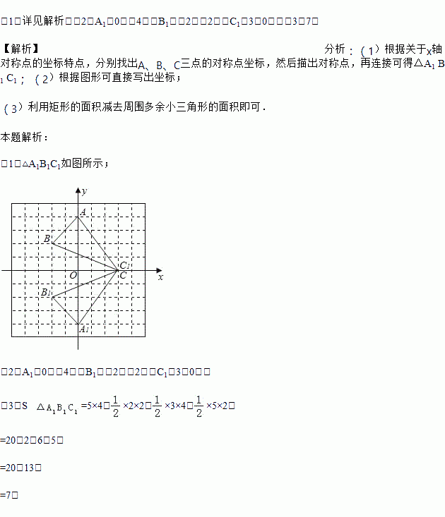 (1)作△ABC关于x轴对称的△A1B1C1;