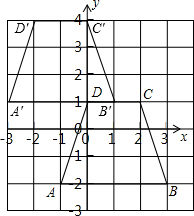 A′(-3,1)、B′(1,1)、C′(0,4)、D′(-2,4).