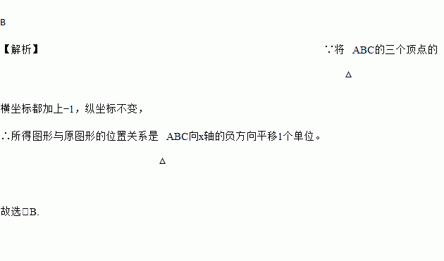 将△ABC的三个顶点的横坐标都加上-1,纵坐标不变,则所得图形与原图形的关系是( )