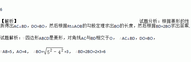 如图,四边形ABCD是菱形,对角线AC与BD相交于O,AB=5,AO=4,求BD的长.