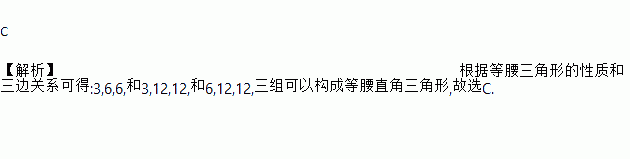 C 【解析】根据等腰三角形的性质和三边关系可得:3,6,6,和3,12,12,和6,12,12,三组可以构成等腰直角三角形,故选C.