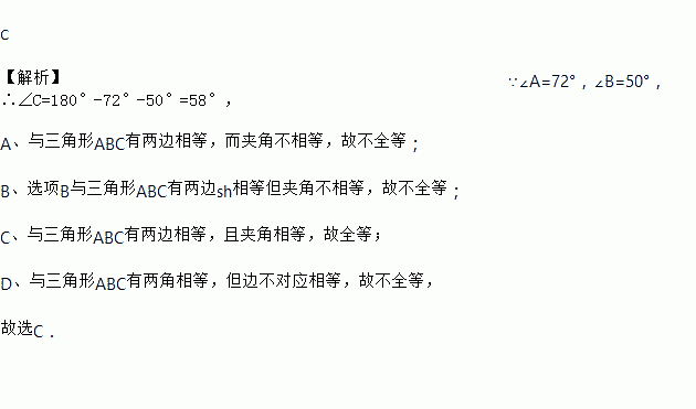 如图,a,b,c分别表示△ABC的三边长,则下面与△ABC一定全等的三角形是( )