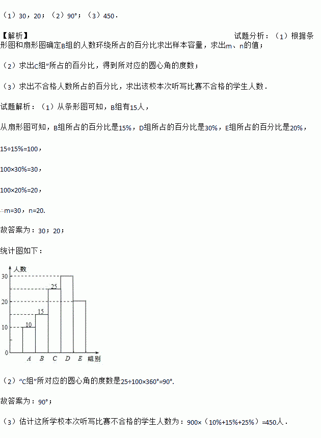 (1)在统计表中,m= ,n= ,并补全条形统计图.