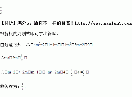 若关于x的一元二次方程x2﹣2mx﹣4m+1=0有两个相等的实数根,则(m﹣2)2﹣2m(m﹣1)的值为_____.