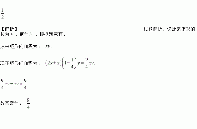 已知矩形ABCD,若它的宽扩大2倍,且它的长缩小四分之一,那么新矩形的面积等于原矩形ABCD面积的____________.