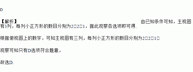 如图是几个小立方块所搭的几何体俯视图,小正方形中的数字表示该位置上小立方块的个数,则这个几何体的主视图是( )