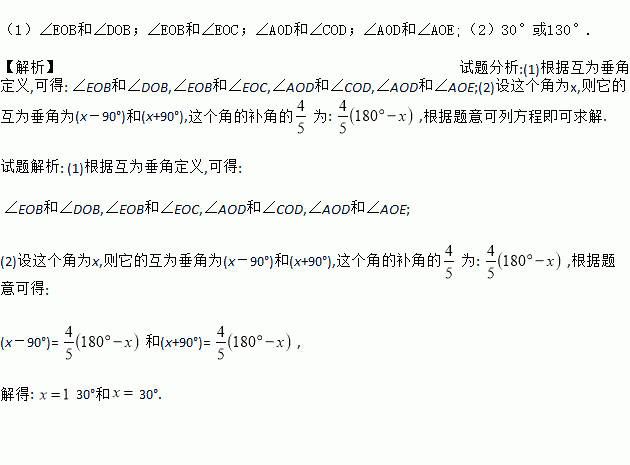 (1)如图,0为直线AB上一点,OC丄AB于点O,OE⊥OD于点O ,请写出图中所有互为垂角的角有_____________;