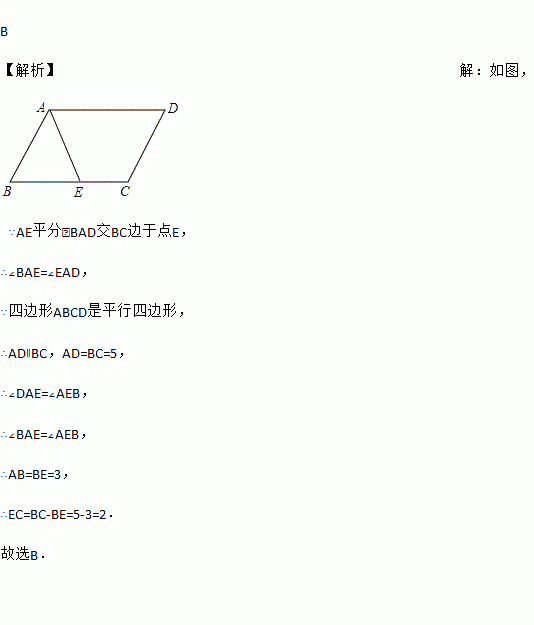 如图,在?ABCD中,已知AD=5 cm,AB=3 cm,AE平分∠BAD交BC边于点E,则EC等于( )