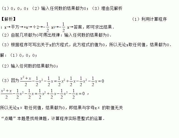 按下列程序计算,把答案填写在表格里,然后看看有什么规律,想想为什么会有