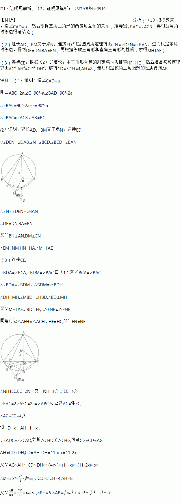 (2)如图2,过点B作BM⊥CD垂足为M,BM交⊙O于E,连接AE、HM,求证:AE∥HM;