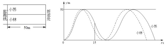 小苏和小林在如图所示的跑道上进行4×50米折返跑.在整个过程中,跑步者距起跑线的距离y(单位:m)与跑步时间t(单位:s)的对应关系如下图所示.下列叙述正确的是( )