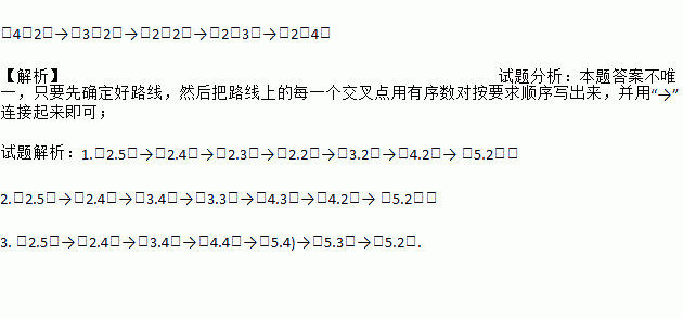 (5,2)”表示从甲处到乙处的一种路线.请你用有序数对写出几种从甲处到乙处的路线.