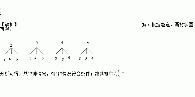 现有点数为:2,3,4,5的四张扑克牌,背面朝上洗匀,然后从中任意抽取两张,这两张牌上的数字之和为偶数的概率为