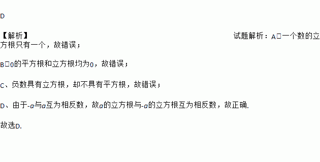 A. 一个数的立方根有两个,它们互为相反数