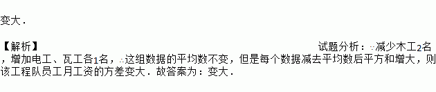 现该工程队进行了人员调整:减少木工2名,增加电工、瓦工各1名,与调整前相比,该工程队员工月工资的方差 (填“变小”、“不变”或“变大”).