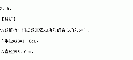如图,在⊙O中,弦AB=1.8cm,圆周角∠ACB=30°,则⊙O的直径为 cm.