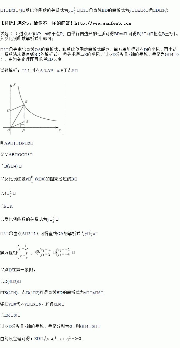 (x>0)的图象于点D,过B,D的直线分别交x轴、y轴于E,F两点,①求直线BD的解析式;②求线段ED的长度.