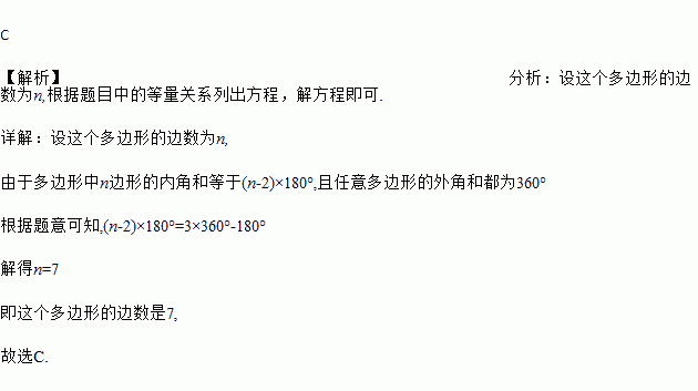 一个多边形的内角和比外角和的三倍少180°,则这个多边形是( )