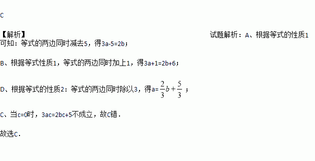 已知等式3a=2b+5,则下列等式中不一定成立的是( )