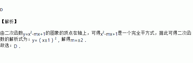 若二次函数y=x2-mx+1的图象的顶点在x轴上,则m的值是( )