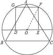 分析 设圆O的半径为R,由正三角形的性质得出S△ABC=a=$\frac{3\sqrt{3}}{4}$RR2,连接OF,设正方形DEFG的边长为2x,则OE=x,由勾股定理和正方形的性质得出x2=$\frac{{R}^{2}}{5}$,得出正方形DEFG的面积b=$\frac{4}{5}{R}^{2}$,即可得出结果.