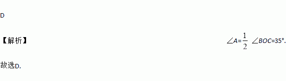 如图,A、B、C是⊙O上的三点,∠BOC=70°,则∠A的度数为( )