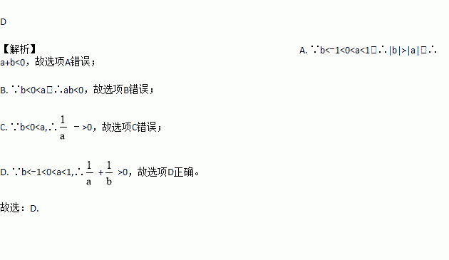 A. a+b>0 B. ab=0 C. ﹣<0 D. +>0