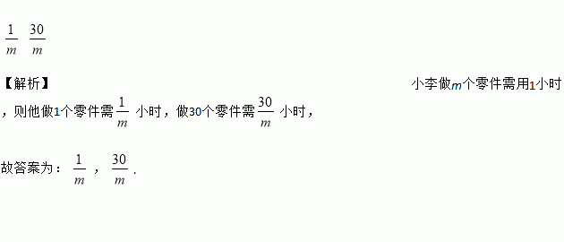 若小李做m个零件需用1小时,则他做1个零件需__________小时,做30个零件需_________小时.
