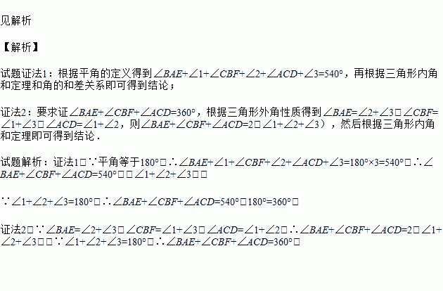 求证:∠BAE+∠CBF+∠ACD=360°.