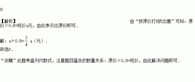 某服装专卖店为了促销,在元旦期间将一批服装按原价打8折出售,若现价为元,