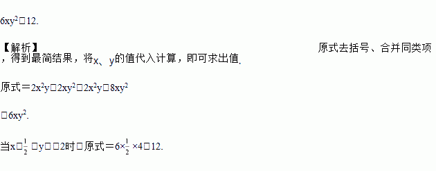 先化简,再求值:2x2y-[2xy2-2(-x2y+4xy2)],其中x=,y=-2.