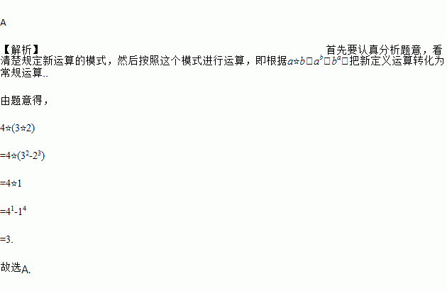 如果规定☆为一种运算符号,且a☆b=ab-ba,那么4☆(3☆2)的值为( )