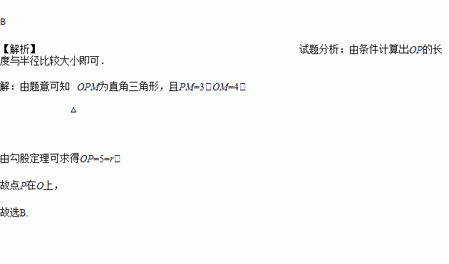 ⊙O的半径r=5cm,圆心到直线l的距离OM=4cm,在直线l上有一点P,且PM=3cm,则点P( )