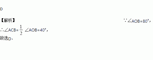 如图,已知A,B,C为⊙O上三点,若∠AOB=80°,则∠ACB度数为( )