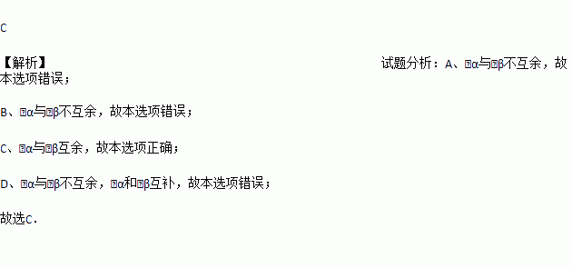 如图,将一副三角尺按不同的位置摆放,摆放方式中∠α与∠β互余的是( )